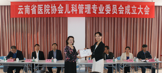 会议由段其雄秘书长主持,会议宣读了“云南省医院协会儿科管理专业委员会”成立批复、颁发了分支机构登记证书、第一届委员会主任委员、副主任委员证书,吴茜院长代表主任委员单位作工作报告和承诺。省卫生厅副厅长(正厅级)、云南省医院协会杜克琳会长作了重要讲话。
