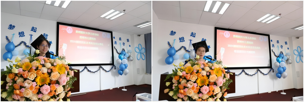 随后,研究生导师代表康晓鹏、杜琨老师进行发言。两位导师以多年身居临床一线的实践感知深情寄语每一位毕业生,学医不是坦途,追逐梦想的航程一定会经历风浪,但“宝剑锋从磨砺出,梅花香自苦寒来”,希望同学们都能成长为真正的“白衣天使”,给更多的儿童带来欢声笑语。