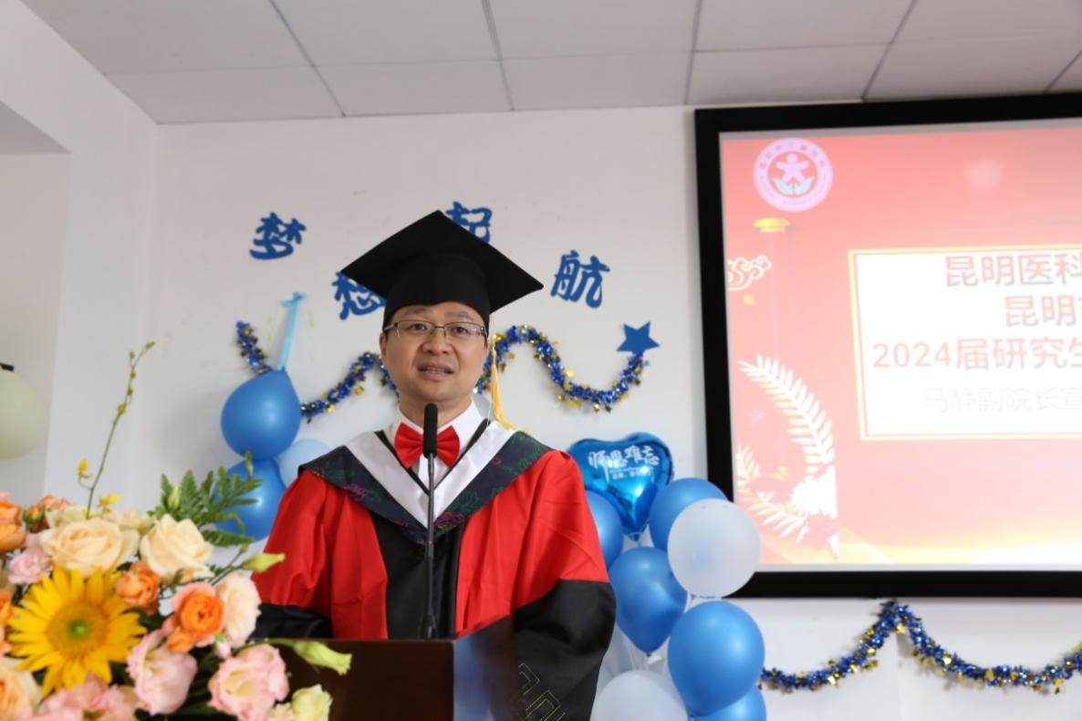 昆明医科大学硕士研究生毕业生代表李雅琴、本科毕业生代表阿克金土木也分别发表了自己的毕业感言,对医院各位领导及老师们的培养与关爱、导师的悉心栽培表示最真挚的感谢,励志在今后的工作学习中定不负嘱托,以热爱之心拥抱未来,乘风破浪,勇攀高峰,为昆儿增光添彩!
