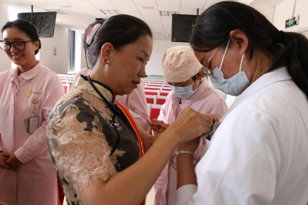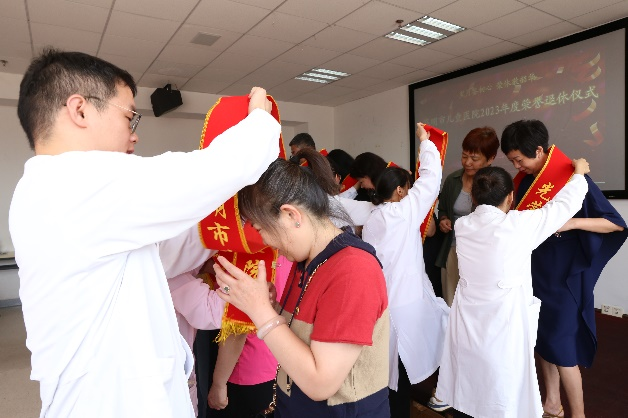 仪式上,院领导为退休人员颁发了光荣退休纪念章和纪念品。新入职职工为退休职工佩戴“光荣退休”绶带,退休职工为新入职职工佩戴院徽。这一刻,代表着过去与未来的交接,象征着传承与创新的融合,老前辈们将自己的坚守与担当传递给新一代,寄托他们对未来的无限期待,相信年轻同志们会在前辈们的激励下,秉承医院的优良传统,为医院的发展续写辉煌篇章!