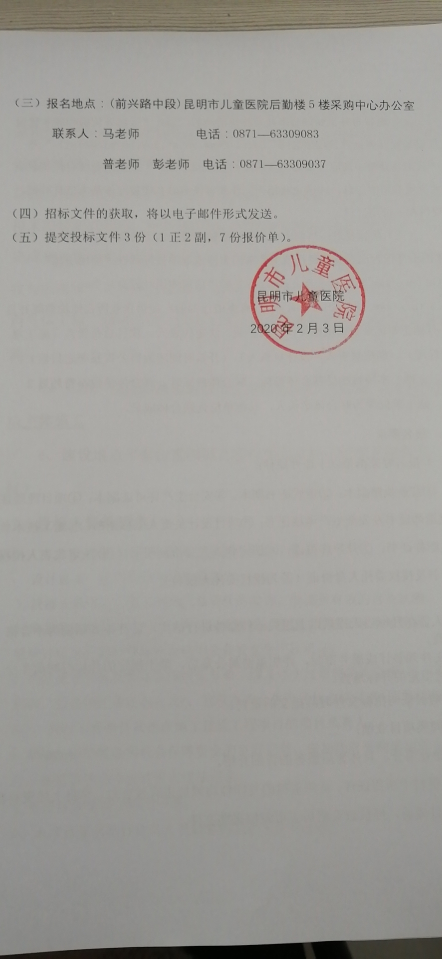 (四)招标文件的获取,将以电子邮件形式发送。